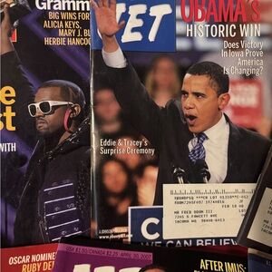 Collection of JET magazines with vibrant covers featuring various celebrities. P diddy, Brock Obama, steve Harvey etc. collectors