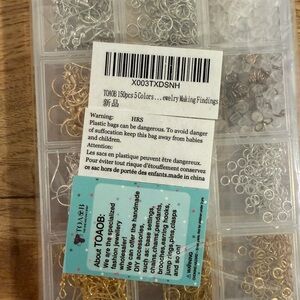 Set of assorted attachments for jewelry making. Includes silver, gold, black, and rose gold pieces and clear backings. Perfect for crafting projects.