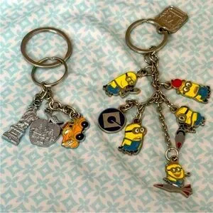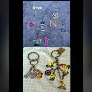 Set of colorful character keychains. Includes popular cartoon and TV show themes. Perfect for fans and collectors.