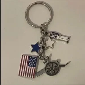Patriotic Keychain with American flag, cannon, stars and soldier charms