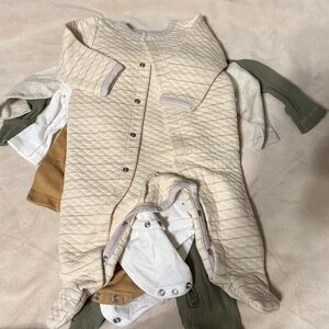This charming set of kids one pieces features a variety of colors including white, cream, and green. Perfect for everyday wear, these pieces offer comfort and style for your little one.