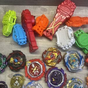 Assorted Large Lot of Beyblade Bay Blades Launchers Parts Metal & Plastic