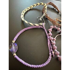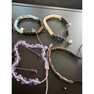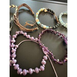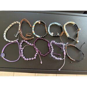 Assorted Lot Of 10 Pull Cord Bracelets Glass Lava Black Purple Brown White Grey