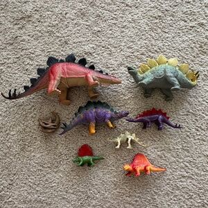 Assorted lot of dinosaurs toys for sale. These items have been gently used but are still in great condition, my son has just outgrown them. There are 24 pieces total (1 plush + 23 hard pieces with a variety of sizes). Please let me know if you have any questions...I am motivated to clean out my house so make me an offer!