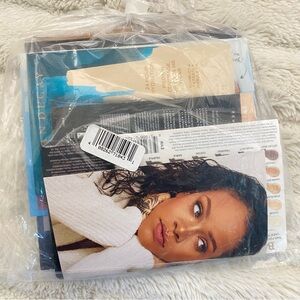 Collection of assorted beauty product samples. Includes various makeup items including Fenty,Urban Decay,NYX and more!