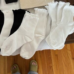 Arm warmers in cool colors. Many different socks sizes 5-9. Lace gloves in different colors Arm warmers all brand new