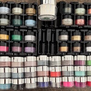 Vibrant collection of nail dip powders in various colors. Perfect for creative nail art. There are over 70 colors many never used and also other items for doing your own dip nails at home. Most are Beetles Brand and also GH Dip.