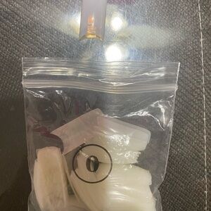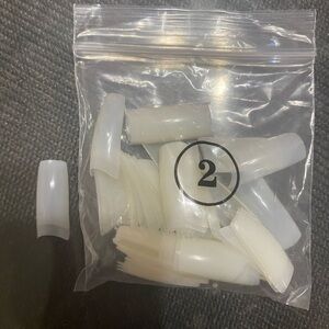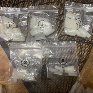 Variety of nail tips in cream and white shades. Perfect for nail art and extensions.