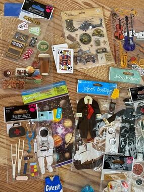 Bright multi-color decorative stickers from Essentials and Jolee's Boutique. Perfect for party favors, scrapbooking, and gift decorating. Includes sports, music, space, and celebration designs in vibrant colors. Easy to use and adds festive flair to any event.
