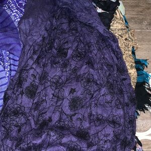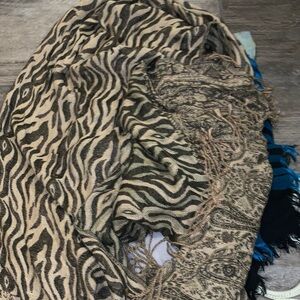 A collection of vibrant scarves featuring animal prints, skull designs, and plaid patterns. All different styles and thickness. Perfect for adding a pop of color to any outfit. 10 scarves (one is a vintage French neck scarf)- I’m gifting a scarf holder.