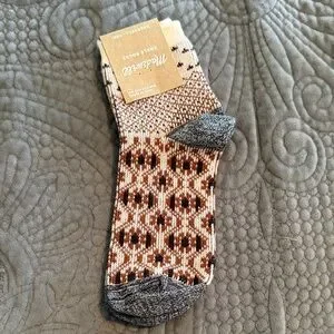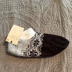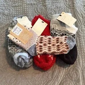 Enjoy comfort and style with this assorted set of patterned socks. Featuring a variety of colors including red, gray, and black, these socks are perfect for any occasion. Features two pairs of slipper socks with gripper bottoms from target brand a new day… one pair of low-cut socks also from a new day and one pair of ankle socks from Madewell… all are new with tags - slipper socks say one size… red socks fit between size 4-10 and the madewell socks are one size fits all