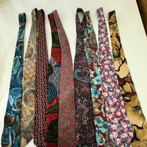 Elevate your style with this set of assorted patterned ties. Featuring a variety of colors including blue, red, and brown, these ties are perfect for any occasion. Add a touch of elegance to your wardrobe.