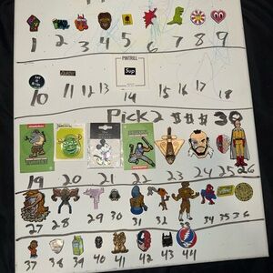 A diverse collection of pins featuring various designs and characters. Perfect for collectors and enthusiasts. Assorted Pin Collection with Various Designs bundle comment let me know deal deal deals send offers followcloset
