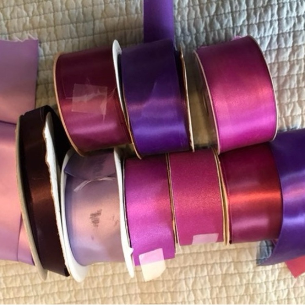 Set of assorted purple ribbons. Perfect for crafts and gift wrapping.