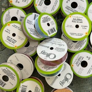 Assorted ribbons. Perfect for crafts and decorations. Includes various colors.