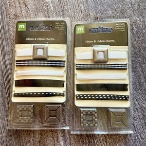 Set of 4 assorted ribbon and ribbon charms in various colors. Perfect for crafting and decoration.