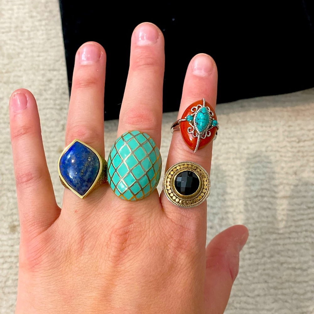 Assorted ring bundle. One Anna Beck ring, two Turquoise rings, one Lapis ring