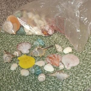Bag of assorted seashells in various colors. Perfect for crafts or decoration.
