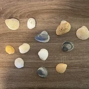 Beautiful collection of assorted seashells. Includes shades of white, cream, and tan. Perfect for decor or crafts.