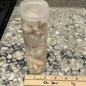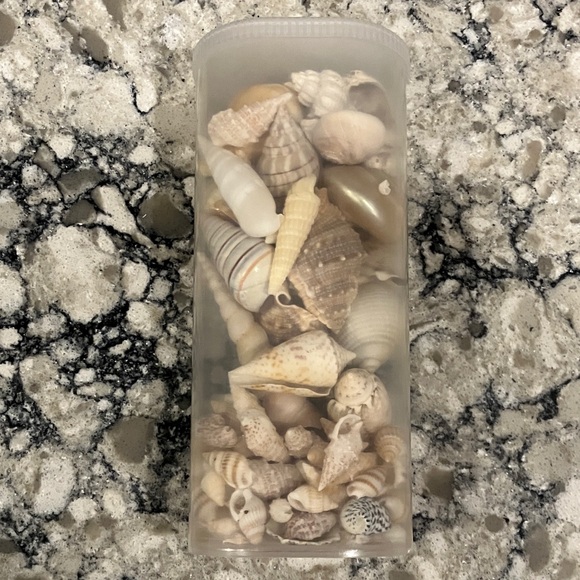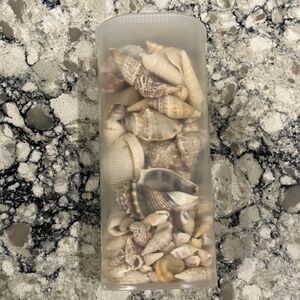 Enhance your home decor with this assorted seashell collection. The shells come in natural cream and tan hues, beautifully displayed in a clear container. Perfect for adding a coastal touch to any room.