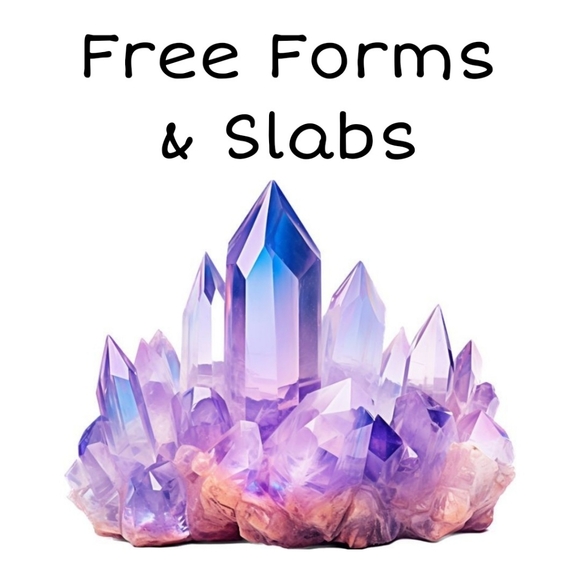 Free forms are crystals that are not cut or are cut, into a specific shape that is not a tower.