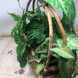 Assorted Silk Greenery in Woven Wicker Basket with Handle