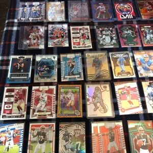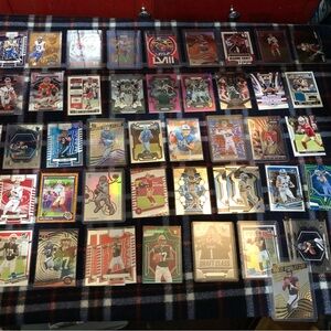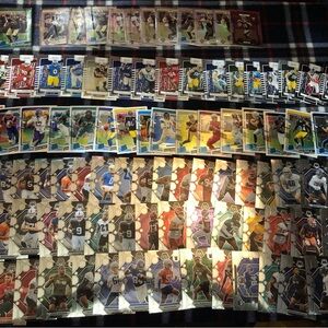 A diverse collection of sports trading cards featuring various players and teams. Perfect for collectors and enthusiasts. You get everything u see. As is all sales final