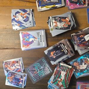Mens and Women's Basketball, Baseball and Football, Ton of goodies. Just no longer into the hobby anymore. Stack of cards as well as protectors with alot of the cards.