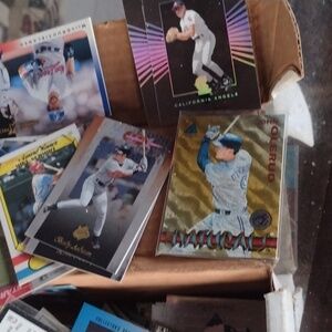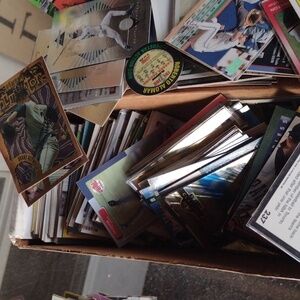 Collection of assorted sports trading cards. Features various athletes and teams.425 count MLB rookies,all stars,inserts,,etc...