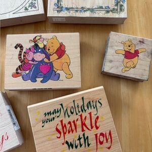 Selling all these stamps as a lot. Christmas, Winnie the Pooh and some floral borders.