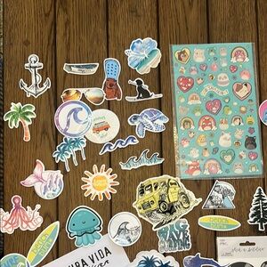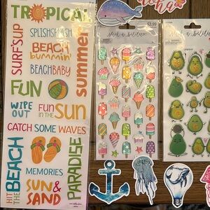 Vibrant sticker set featuring tropical, sports, and fun designs. Includes pineapples, avocados, and soccer balls.