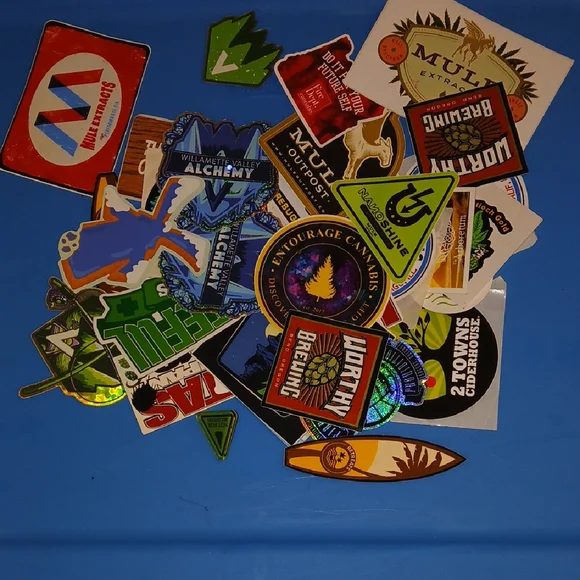 Vibrant collection of assorted Dispensary and brewery stickers. Perfect for decorating and personalizing items.
