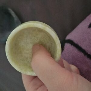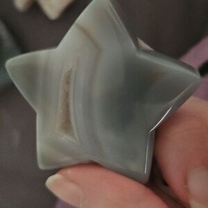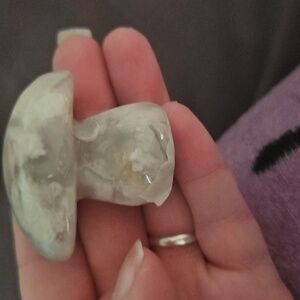 Set of five stone shapes including a heart flourite bowl, agate star, sunstone cloud, flower agate mushroom, and a jade bowl.
