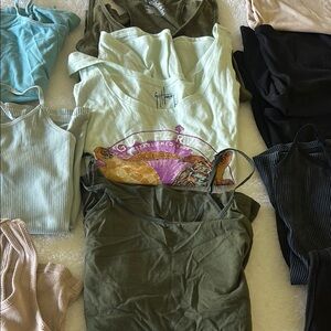 A collection of assorted tank tops in various colors including black, green, and cream. Perfect for casual wear.