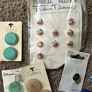 A diverse collection of vintage buttons in various colors and styles. Perfect for crafting and sewing projects. Over 94 pieces!