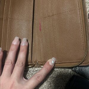 And some cracks on the inseam. Please see photo for all the damages the wallets that no show close up don’t have any damage