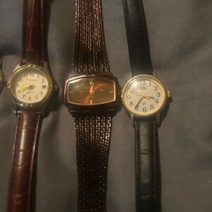 A collection of stylish watches in various designs and colors. Includes black, gold, brown, and silver tones. Watches range from Skagen, Citizen and Fitbit. Fitbit does not come with charger.