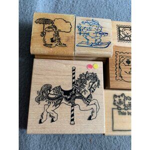 Assorted Wooden Rubber Stamps Scrapbooking - Carousel Horse Cute Animals & More