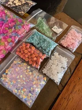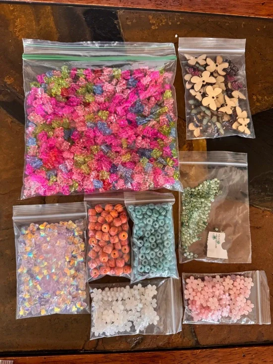 All new never used. Lots of beads. Butterflies, gummy bears, flowers and shaped beads.