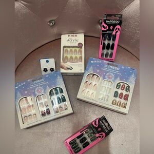 Collection of imPRESS and KISS nail sets. Includes various colors and styles.