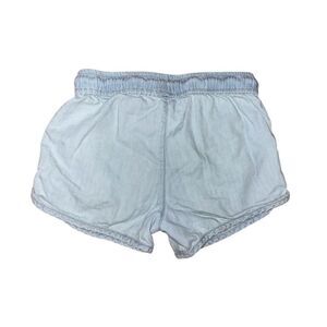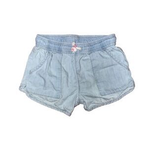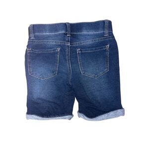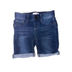 Five blue denim shorts. Brands: Vince Camuto, Osh Kosh, Gap, and Tommy Bahama. Light and medium wash. One pair are distressed. Cotton/polyester/spandex. Size: 7. Preowned in good condition.