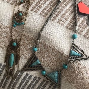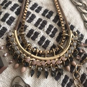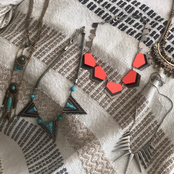 10 statement necklaces. 1 from kate spade missing a stone you could easily put a new one in , I paid $125 alone for just this one necklace. 4 express statement necklaces. 3 charming charlie necklaces never worn. 2 from the buckle never worn. $35 for all