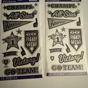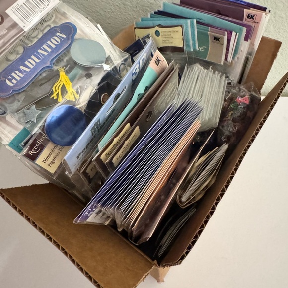 Box of assorted stickers and embellishment. Perfect for scrapbooking and DIY projects.