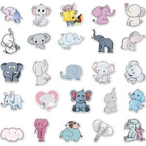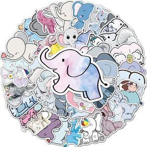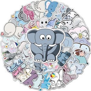 Cartoon elephant stickers. 50 assorted stickers. PVC waterproof. Bundle to get 25% off.