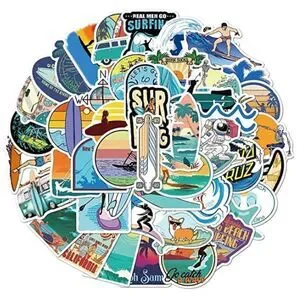 Assorted surfing stickers. 50 stickers in total. Waterproof. Bundle to get 25% off.
