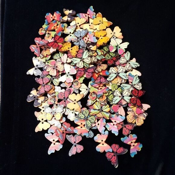 Assortment of 100 Colorful Hand Painted Wooden Butterfly Buttons