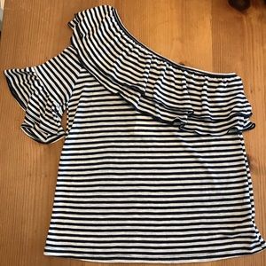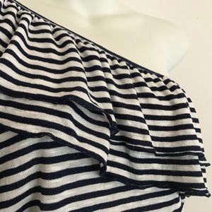 Dark blue and white striped top! Ruffles on back too.
