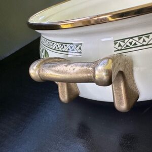 Asta Germán Enamelware 1960’s Floral Dutch Oven Casserole with Brass Handles.
