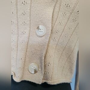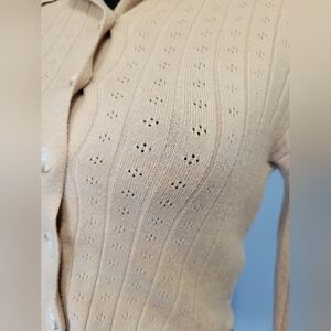 Aster Collared Pointelle Knit Crop Cardigan in Cream Size M?