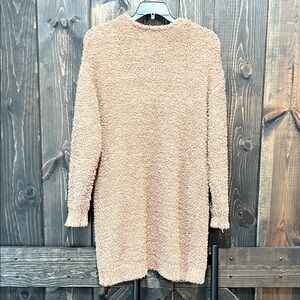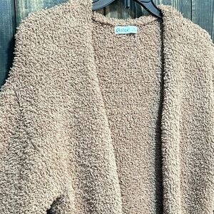 Aster brand open boucle cardigan. Size small. Long sleeves. Front pockets. Tan (color shade may vary depending on screen). Soft & cozy. Great for fall & winter. Layering outerwear. Dress up or down. Stylish but comfy enough to lounge in. Polyester. Relaxed fit. Preloved. Please see all photos for condition.